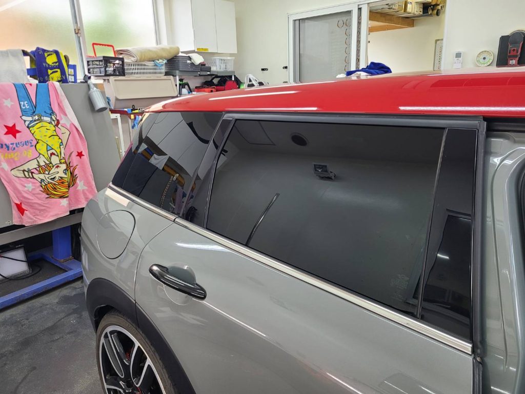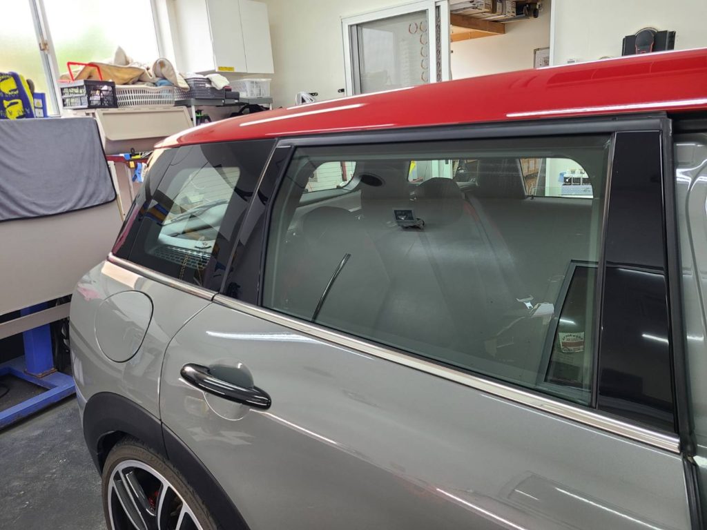 ミニクラブマンに3年塗料コーティング・リア6面の断熱スモークフィルム施工、タイヤ交換・ドラレコ取付を行いました!