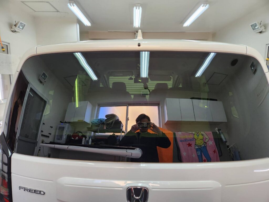 ホンダフリードのリアガラス5面にUVカットスモークフィルムを施工しました!