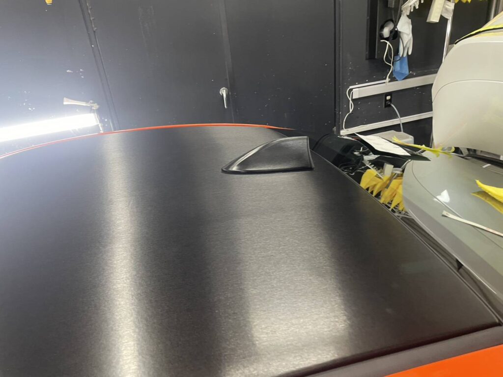ボンネット・ドア・クウォーターパネル等にはAvery社のコンフォートクロームブラックというフィルムを使用して施工していきました。